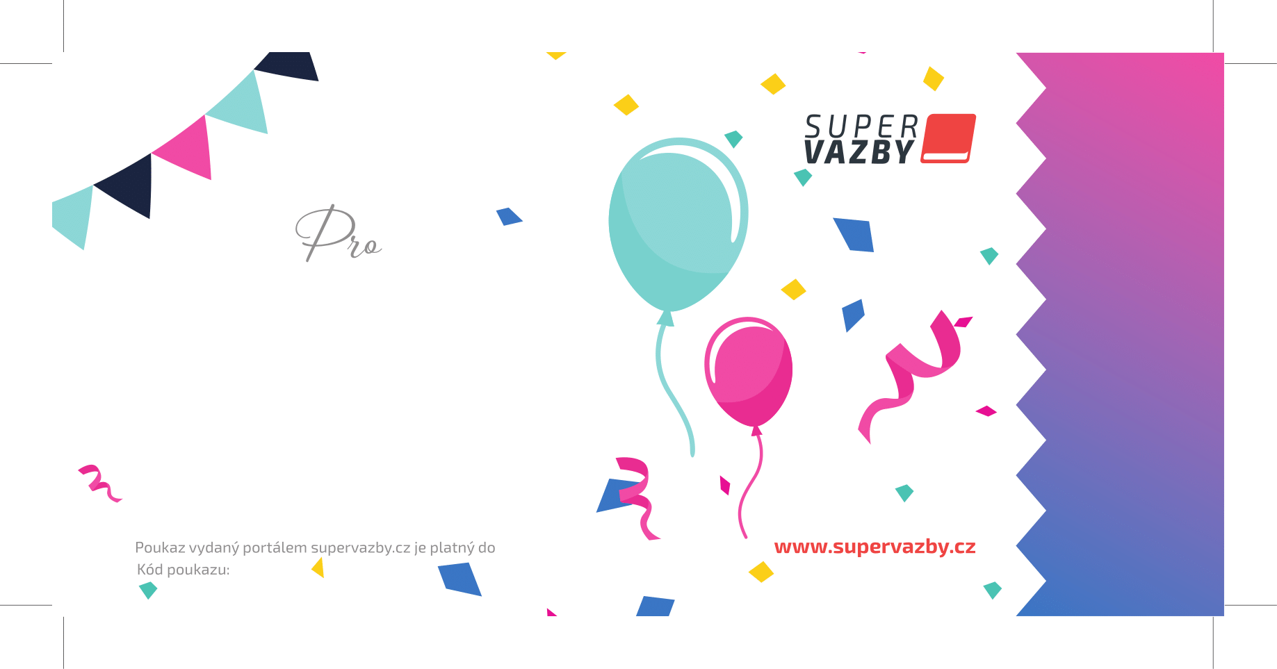 Platnost dárkového poukazu je 13 měsíců od zakoupení. Uplatnit jej lze při objednávce na webu SuperVazby.cz. Poukaz je zaslán ihned po úhradě na Váš e-mail.